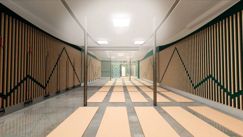 Corbett a pris en compte les attentes de son client et a créé un environnement axé sur la nature et la jungle, pour offrir un véritable cocon aux pratiquants. En plus de la salle principale, Corbett a également conçu deux vestiaires et des toilettes. Ils se sont occupés de la décoration, du choix du matériel nécessaire pour les activités de yoga, de fitness et de Pilates, ainsi que de tout l'agencement de la salle.